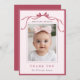 Tarjeta De Agradecimiento Blush Pink Red Bow Simple Birthday Photo