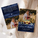 Expresar su agradecimiento con esta carta de agradecimiento de este boda rústico de madera azul marino de girasol. El diseño está decorado con hermosos girasoles amarillos color agua y rosas rojas burdeos con luces de cuerda sobre un fondo rústico de madera de granero. Personaliza con dos fotos, tus nombres y tu mensaje personal.