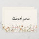 Expresa tu gratitud con estilo con nuestra tarjeta de agradecimiento de boda boho de flores silvestres. Con delicadas ilustraciones de flores silvestres y tonos suaves de inspiración boho, esta tarjeta es la forma perfecta de agradecer a tus invitados por celebrar tu día especial. Con un diseño atemporal y mucho espacio para un mensaje sincero, es un hermoso recuerdo que refleja el encanto y el romance de tu boda. Muestra tu aprecio con esta tarjeta elegante y considerada que complementa tu historia de amor única.