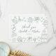 Tarjeta de agradecimiento de boda caprichosa verde salvia y blanco inspirada en Europa y dibujada a mano.