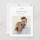 Expresar su gratitud con las cautivadoras "Tarjetas de agradecimiento Celestiales de Oro". Con un fondo blanco inmaculado, estas tarjetas irradian un encanto limpio y minimalista. La luna creciente dorada y una foto de personalizable de la pareja ocupan el centro del escenario, simbolizando la gratitud y proyectando un resplandor celeste que refleja la magia de tu día especial.