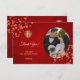 Esta elegante tarjeta de Boda china Tank You Card presenta hermosas flores de cerezo rojo, un símbolo de doble felicidad dorado y tu foto en círculo.