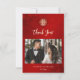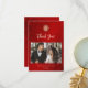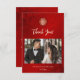 Esta tarjeta de agradecimiento del boda chino incluye un signo de doble felicidad dorada y palabras de "gracias" en un guión moderno escrito a mano con un fondo rojo brillante. Con un texto personalizado de agradecimiento a tu boda, tu foto y tus nombres y fecha de boda.