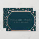 La carta "Gracias" de una boda de invierno moderna y contemporánea, presenta un patrón geométrico rosa de oro "falso Relieve metalizado" sobre un fondo turquesa oscuro. Todos tus detalles están escritos en un bonito y moderno error. Yo sí ofrezco un servicio de personalización gratuito, si tiene alguna solicitud especial, por favor envíeme un correo electrónico a: margherita@bluebirdinvites.com El franqueo de EE.UU. correspondiente está disponible aquí: http://www.zazzle.com/collections/geometric_winter_wedding_set-119231006408651896 Pulsando sobre el botón del personalizar puede acceder a las herramientas de edición y cambiar el color de fondo, el tipo y mucho más Nota ____________________________________________________________________________________________________________________________________________ El color de cobre metálico no es Relieve metalizado real, es sólo un efecto de color __________________________________________________________________________