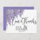 Boda de lavanda de árbol de glicinia púrpura Gracias diseño. El diseño es fácil de personalizar, si desea cambiar los tipos de letra haga clic en el personalizar. Los colores pastel son perfectos para los Bodas de primavera y verano. El diseño refleja una decoración moderna y sencilla de Boda.