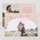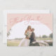 Elegante y mínimo boda gracias tarjeta de foto con un gran arco rosado con un tipo de letra que dice "gracias" en la parte superior. Puede agregar una segunda imagen en la parte posterior con un mensaje.