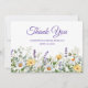 Crea tu propia caligrafía elegante gracias a tu tarjeta plana 5x7 de formato horizontal para tu boda. Se puede personalizar el color púrpura de la caligrafía y el texto, así como los estilos de fuente. Un boda de borde floral de acuarela de flores silvestres, tarjeta de agradecimiento. Los colores principales son blanco, dorado, amarillo y violeta con hojas verdes. Diseño de acuarela floral mixta.