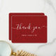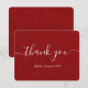 Tarjeta de agradecimiento rústica roja con fondo de arpillera roja y una fuente de escritura moderna. Personalice fácilmente esta tarjeta de agradecimiento para una boda, desayuno de novia, cumpleaños u otra ocasión.