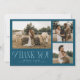 Tarjeta de agradecimiento de boda rústica y elegante que incluye un texto de tipografía que dice "gracias" en un tipo de letra mezclado con guiones y tipos de letra serif. Esta plantilla tiene 3 fotos en la parte delantera y 1 en la parte posterior. El color de fondo es azul verde azulado.