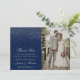 Tarjeta De Agradecimiento Boda de Confetti Azul y Glam Plata de Marina