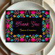 Exprese su gratitud con estilo festivo usando esta elegante tarjeta de agradecimiento Boda Fiesta. Con florales vibrantes de inspiración mexicana en ricos tonos rojos, naranjas, rosados y amarillos, el diseño capta el alegre espíritu de una fiesta mientras mantiene un toque elegante y refinado. Delicados detalles y elegante tipografía equilibran los colores llamativos, creando una perfecta armonía de celebración y sofisticación. Ya sea después de una boda de destino animada o de una colorida celebración en su ciudad natal, esta tarjeta de agradecimiento ofrece una manera sincera y elegante de mostrar su aprecio.