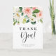 Envía gracias a los invitados y clientes con esta tarjeta de agradecimiento de papelería personalizable. Cuenta con un ramo floral de acuarela de flores rosas y blancas y vegetación. Personalice esta tarjeta de acuarela agregando los detalles de su evento. Esta tarjeta de agradecimiento floral es perfecta para bodas, despedidas de soltera, baby showers y otros eventos.