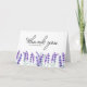 Envía agradecimiento con esta hermosa tarjeta de agradecimiento floral. Cuenta con ilustraciones de acuarela de flores de lavanda y letra elegante. Personaliza añadiendo nombres y mensaje. Estas tarjetas de agradecimiento florales moradas son para bodas, cumpleaños, graduaciones y mucho más.