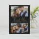Tarjeta de agradecimiento Gold Script 3 foto boda elegante y moderno. La parte posterior incluye un mensaje de agradecimiento que puede personalizar para cada invitado o eliminar si prefiere escribir a mano su agradecimiento. Haga clic en el botón de edición para personalizar.