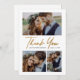 Tarjeta de agradecimiento Gold Script 3 foto boda elegante y moderno. Parte de una colección de bodas. La parte posterior incluye un mensaje de agradecimiento que puede personalizar para cada invitado o eliminar si prefiere escribir a mano su agradecimiento. Haga clic en el botón de edición para personalizar.