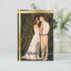 Tarjeta de agradecimiento a Bodas modernos de banda gruesa dorada con plantilla fácil de editar para fotos y texto personal. <a href="https://depositphotos.com/photos/tools.html">- depositphotos.com</a>