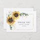 Tarjeta De Agradecimiento Boda de girasol floral Eucalyptus Greenery