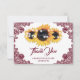 Agradezca a sus invitados por compartir su día especial con estas elegantes tarjetas de agradecimiento de boda de girasoles rústicos de borgoña. Artículos coincidentes disponibles.
