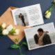 Hermosa tarjeta de agradecimiento a tu boda. Tarjeta de agradecimiento boda de doble lado con dos fotos, una en forma de arco con AMOR y GRACIAS escrito en una curva. Tarjeta de agradecimiento del boda blanco con sus nombres en un guión moderno de pincel gris. Fotos grises y blancas gracias a las tarjetas por las recién casadas. Añade tu propio mensaje de agradecimiento personal.