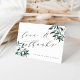 Moda otoño notas de agradecimiento botánico le permiten expresar su gratitud a sus invitados bodas con un estilo elegante. El frontal presenta "amor y agradecimiento" en letras caligráficas fuera de negro acentuadas con follaje acuático en tonos de cazador, bosque y verde salado. Personalice con sus nombres en la parte inferior y personalizar el interior con un mensaje y firma preimpresos personalizado, así como una foto boda favorita. Diseñado para coordinar con nuestro boda Harvest Sage y la colección de artículos de papelería.