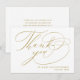 Envía una tarjeta de agradecimiento minimalista personalizada a tus invitados de boda para darles las gracias. Este diseño simple presenta una elegante escritura falsa dorada a mano que dice "Gracias" junto con tu nombre para personalizar. La parte trasera de la tarjeta tiene un mensaje personalizado junto con tu firma. Diseñado por Susan Coffey.