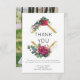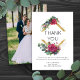 Tarjeta de agradecimiento del Boda Rosa Rojo con mensaje de agradecimiento personalizado y foto boda de tamaño completo en la parte posterior. Este diseño presenta un elegante marco geométrico de rombo dividido, decorado con brotes y flores de rosa de acuarela, hojas de eucalipto y vegetación. Diseño versátil para un clásico floral, botánico moderno, jardín boho o romántico boda temático. Por favor, navegue por mi colección Red Rose y Eucalyptus Boda Suite para coordinar el diseño de papel y la decoración del día de evento o, envíeme un mensaje para crear las plantillas que necesite.