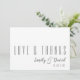Fuente moderna "Amor y Gracias" Boda Tarjeta de agradecimiento | Elegante Boda Personalizado Stationery . Expresar su gratitud con estilo con esta moderna fuente "Amor y Gracias" boda tarjeta de agradecimiento. Perfecto para los bodas contemporáneos, esta elegante tarjeta de personalizable le permite añadir un mensaje personal para mostrar su agradecimiento a sus huéspedes. Ideal para los temas de moda, minimalista y moderna boda.