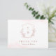 Monograma enmarcado por un delicado wreath de hojas botánicas ilustradas a mano en oro rosa falso y rosa claro, simple y sofisticado. Excelentes tarjetas de agradecimiento para boda moderna clásica, boda formal simple, boda elegante en jardín botánico.