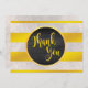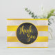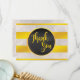 Una tarjeta de invitación de agradecimiento limpia escrita en letra dorada sobre líneas rayadas grises negras tendrá una apariencia clásica .