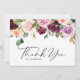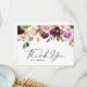 Envía gracias con esta tarjeta de agradecimiento personalizable. Tiene una guirnalda de acuarela de flores de melocotón, borgoña y púrpuras con toques de verde. Personaliza añadiendo tus detalles. Esta tarjeta de agradecimiento floral es perfecta para bodas otoñales, celebraciones de boda, cumpleaños y más.