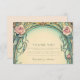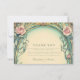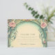 El diseño combina con elegancia botánica y vintage y presenta rosas de color suave entrelazados con hojas verdes de salvia y delicados gradientes azules. La invitación, enmarcada con unas curvas de oro y marfil, evoca un ambiente de jardín de cuentos de hadas con un toque Art Nouveau clásico, perfecto para una celebración romántica y atemporal de los bodas.