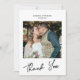 Una carta de agradecimiento de boda simple pero elegante que puedes personalizar con tu propia foto. También puede personalizar el mensaje en la parte posterior de la tarjeta.