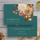 Tarjeta De Agradecimiento Boda de Terracota Floral Acuarela Otoño Teal