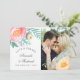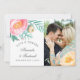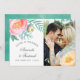 Tarjetas de agradecimiento de fotos de boda de verano exóticas de menta, rosa y amarillo con peonías y follaje tropical.