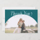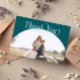 Elegante y mínimo boda gracias tarjeta de foto con un gran armazón verde con una letra serif que dice "gracias" en la parte superior. Puede agregar una segunda imagen en la parte posterior con un mensaje.