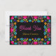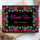 Expresa tu gratitud con un toque festivo utilizando esta Tarjeta de Agradecimiento para Boda Elegante Fiesta. Con vibrantes flores de inspiración mexicana en ricos tonos de rojo, naranja, rosa y amarillo, el diseño captura el espíritu alegre de una fiesta mientras mantiene un toque refinado y elegante. Los detalles delicados y la tipografía elegante equilibran los colores intensos, creando una armonía perfecta de celebración y sofisticación. Ya sea después de una animada boda en un destino lejano o una colorida celebración en el pueblo natal, esta tarjeta de agradecimiento ofrece una forma sincera y elegante de mostrar tu aprecio.