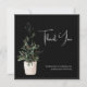 Boda De Festividades Del Árbol De Navidad Negro De Invierno - Una Celebración Sin Tiempo En Medio De La Elegancia Eververde. Disfrute de la magia de la temporada con nuestra fiesta boda navideña en invierno gracias a las tarjetas, una elección perfecta para un boda tradicional y elegante de Navidades. El bellamente adornado árbol de Navidad, que simboliza el crecimiento duradero del amor, ocupa el centro del escenario en medio de un telón de fondo de sofisticación moderna. Con su encanto clásico y su encanto siempre verde, esta carta de agradecimiento capta el espíritu de las vacaciones al tiempo que mantiene una elegancia intemporal. Comparte la alegría de tu boda de invierno con tus seres queridos a través de estas encantadoras tarjetas de agradecimiento, y considera emparejarla con nuestro árbol de macetas a juego gracias a las tarjetas por una completa y cohesionada suite de papelería boda.