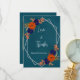 Boda floral rústico otoñal: azul marino y terracota quemado naranja floral con follaje otoñal. Presenta una tipografía de escritura verde azulada azul y moderna. Plantilla de foto vía Pixabay bajo licencia CC0 y debe ser reemplazada por su propia foto