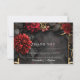 Sumérjase en un ambiente de opulencia gótica con este diseño barroco de boda floral. Deep crimson dahlias, adornos dorados y texturas negras vintage enmarcan tu texto personalizado con una elegancia dramática. Ideal para bodas de Halloween, temáticas victorianas o eventos románticos caros, este diseño marca la pauta para una celebración inolvidable llena de misterio y estilo.