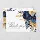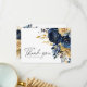 Tarjeta De Agradecimiento Boda floral Navy Blue Gold