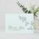 Un boda floral de color azul rústico tarjeta de agradecimiento que es personalizable para su día especial. Este diseño presenta ilustraciones botánicos originales dibujados a mano, situados en un hermoso entorno verde azulado suave. Complete su suite boda con nuestra colección floral rústica y sincera.