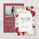 Tarjeta De Agradecimiento Boda floral roja rubí y blanca con foto