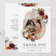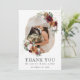 Tarjeta De Agradecimiento Boda Floral Rojo Burdeos Dorado Geométrico Foto