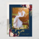Tarjeta De Agradecimiento Boda Foto Burgundy Floral Azul Marino Dorado