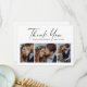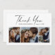 Script 3 foto boda elegante estilo moderno tarjeta de agradecimiento. Parte de una colección de bodas.La parte posterior incluye un mensaje de agradecimiento que puede personalizar para cada invitado o quitar si prefiere escribir con la mano su agradecimiento. Haga clic en el botón de edición para personalizar.