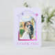 Moda mística Lavender Pink Sun Moon Stars Celestial Space Photo Boda Gracias a las tarjetas presenta el sol, la luna y las estrellas con un marco rosa y violeta que rodea tu foto favorita en un fondo de lavanda pastel. Al contrario, añada su mensaje de agradecimiento a su personalizado. Personalice editando el texto en los cuadros de texto proporcionados y agregando su foto favorita. FOTO TIP: céntrate tu foto antes de subir a Zazzle. Diseñado por ©Evco Studio www.zazzle.com/store/evcostudio