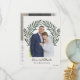 Elegante foto de agradecimiento a los huéspedes de su boda. Tarjeta de agradecimiento boda de doble cara con dos fotos, una en forma de arco con vegetación en tonos suaves de verde helecho y verde salvia con Amor y Gracias en un guión gris. Boda blanquecino de agradecimiento tarjeta con su foto dentro de un arco verde. Fotografía de Greenery Wreath gracias a las tarjetas por las recién casadas. Añade tu propio mensaje de agradecimiento personal a la parte posterior de la tarjeta de agradecimiento de la foto doble.