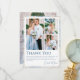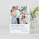 Boda de fotografía floral con color azul turquesa y agitado romántico Gracias a las tarjetas presenta celeste azul polvoriento y flores delfinísimas con vegetación eucalipto acentuada con mariposas. Agrega tu mensaje de agradecimiento personalizado en un guión elegante de caligrafía con cuatro de tus fotos favoritas. Diseñado por Evco Studio www.zazzle.com/store/evcostudio