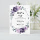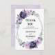 Tarjeta De Agradecimiento Boda geométrico de flores moradas plateadas