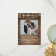 La foto de tu boda en la parte delantera está acentuada con un fondo rústico, rústico, marrón de madera templada y suaves luces de cuerda de brillo amarillo junto con el título de LOVE & THANKS y la fecha de tu boda en un tipo de letra manuscrita de occidente de un país y tu nombre en un tipo de letra de guion de pincel rugoso. La parte posterior de la tarjeta contiene otra foto y ofrece un lugar para escribir un mensaje general de agradecimiento (o borrar el texto de ejemplo para dejar en blanco las notas de agradecimiento escritas a mano). PUNTO DE FOTOGRAFÍA: Para obtener los mejores resultados y más rápidos, elija una foto con el sujeto en el medio y/o pre-recortar en una forma cuadrada ANTES de subir. Póngase en contacto con el diseñador a través de Zazzle Chat o makeitaboutyoustore@gmail.com si desea modificar el diseño o coordinar elementos.
